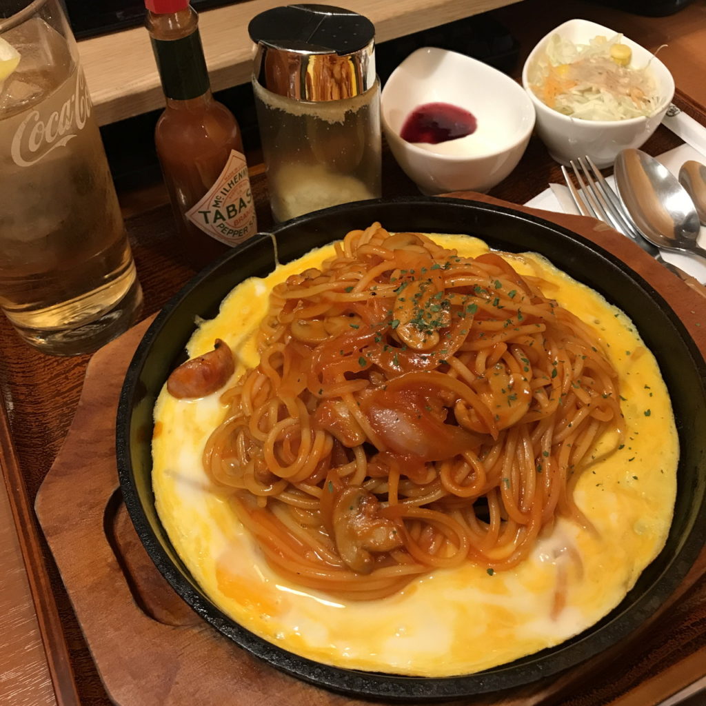 昼飯はランチパスタ。今日は鉄板ナポリタン